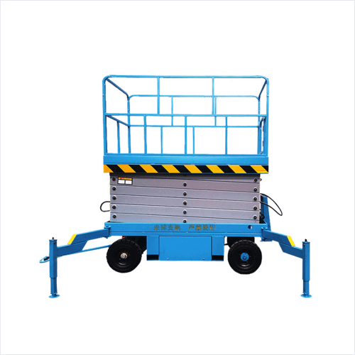Towable scissor lifts platform adopts high-strength manganese steel structure, four wheels are easy to move, the work surface is wide, and the bearing capacity is high.